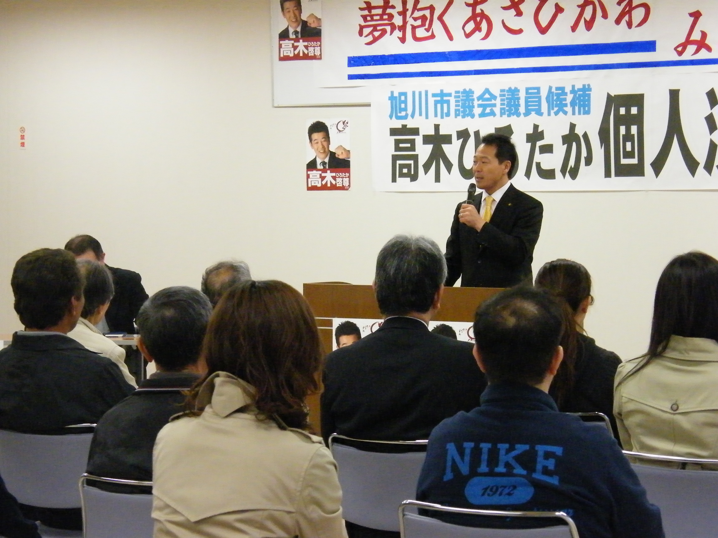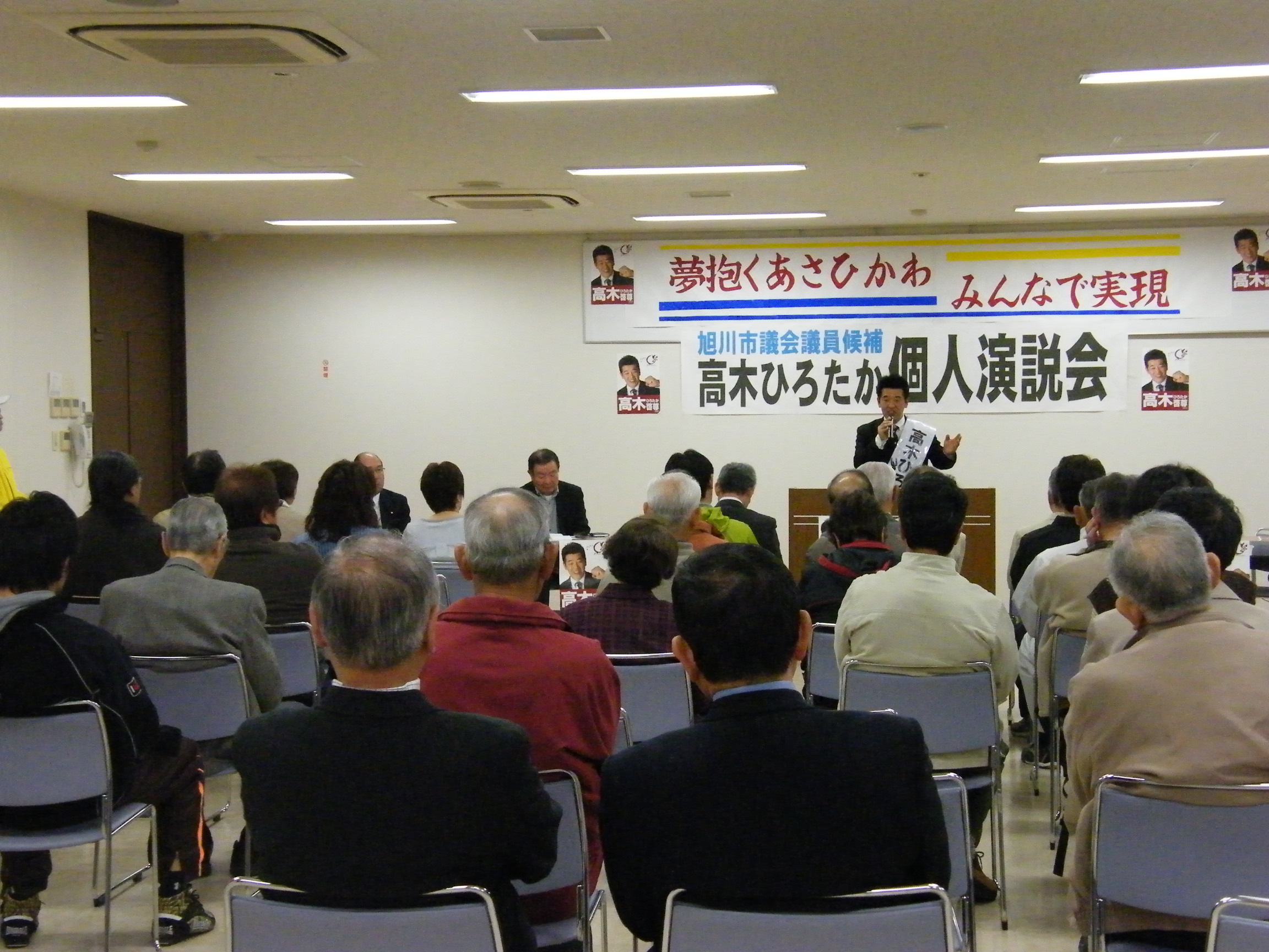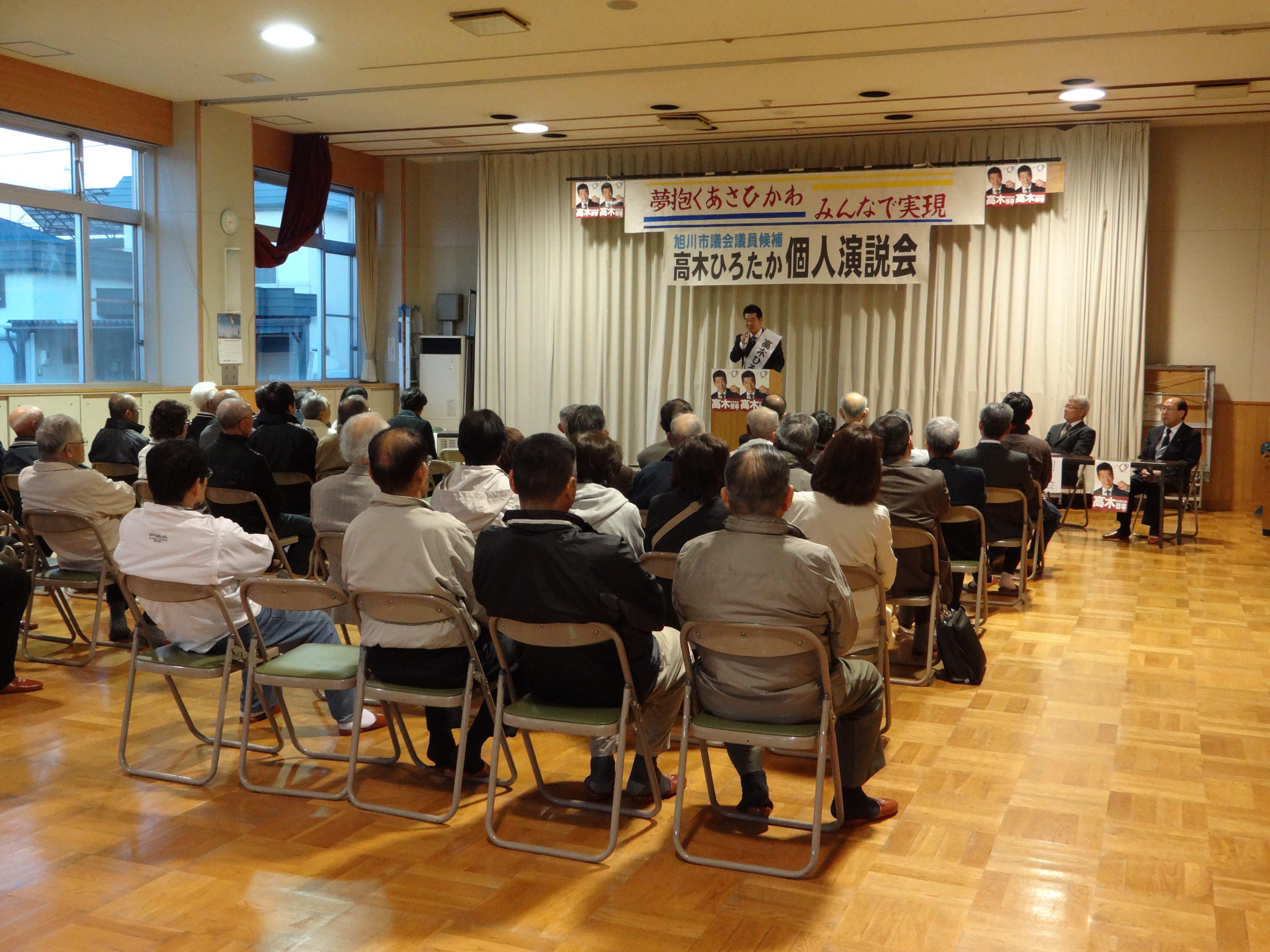 23日の末広地区センターには、北口雄幸道議会議員に士別から駆け付けていただきました。25日選挙戦最後のJAながやま基幹支所での個人演説会には、西川将人旭川市長に応援弁士をいただきました。ありがとうございます。