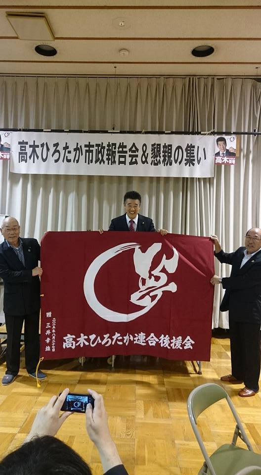 8月27日(木)、私の初の市政報告・懇親の集い第1弾を末広地区センターをお借りし開催しました。末広地域の皆さんを中心にたくさんのご参加をいただきました。また、木村峰行先輩(前道議会副議長)、三井幸雄先輩(旭川市議会議長)から身に余るご挨拶を頂戴し、三井先輩からは私の後援会旗を作っていただき、皆さんにお披露目をさせていただきました。以前から親しくさせていただいています墨絵書家の小林白炎さんの「夢」の書を私のシンボルマークとして使わせていただいています。その白炎さんの「夢」の書の後援会旗…大切に使わせていただきます。これからも皆さんの思いにしっかりと応えていくため誠心誠意努めて参ります。皆さんのご指導をどうぞよろしくお願いいたします。お手伝いいただいた後援会の皆さん、ご出席いただいた支持者の皆さん、本当にありがとうございました。
