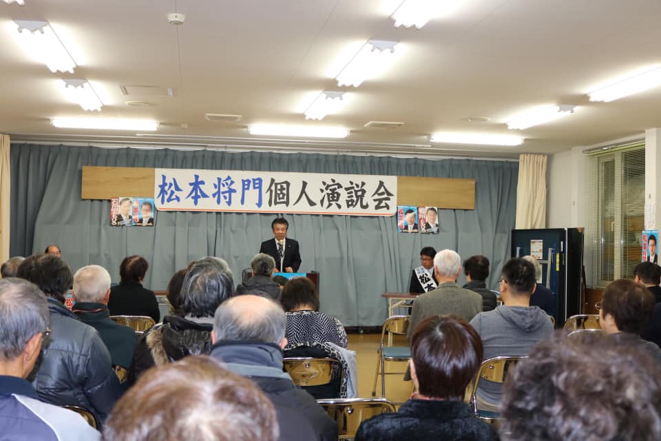 松本将門道議候補個人演説会:3月30日(末広交友会館)